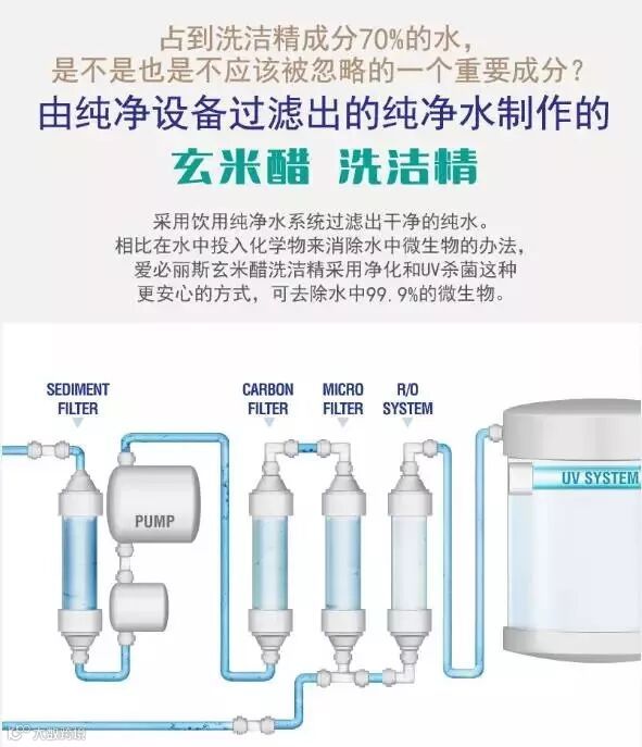 这款洗洁精在制造时,相比于使用化学试剂进行杀菌的方式,对加入产品中的水,爱必丽思选择了更安全的物理净化和UV杀菌这两种方式,去除了水中的细菌和99.9%的微生物,从源头上为洗洁精提供最优质的成分。让消费者使用起来更加放心。
