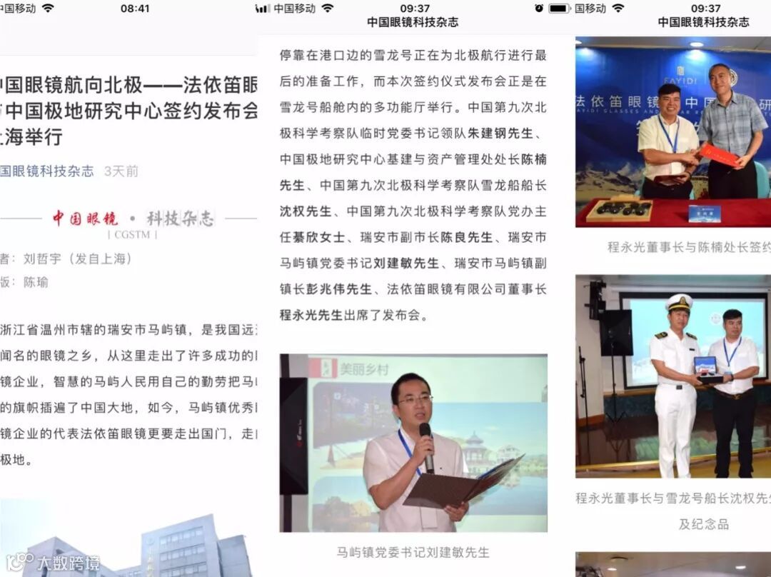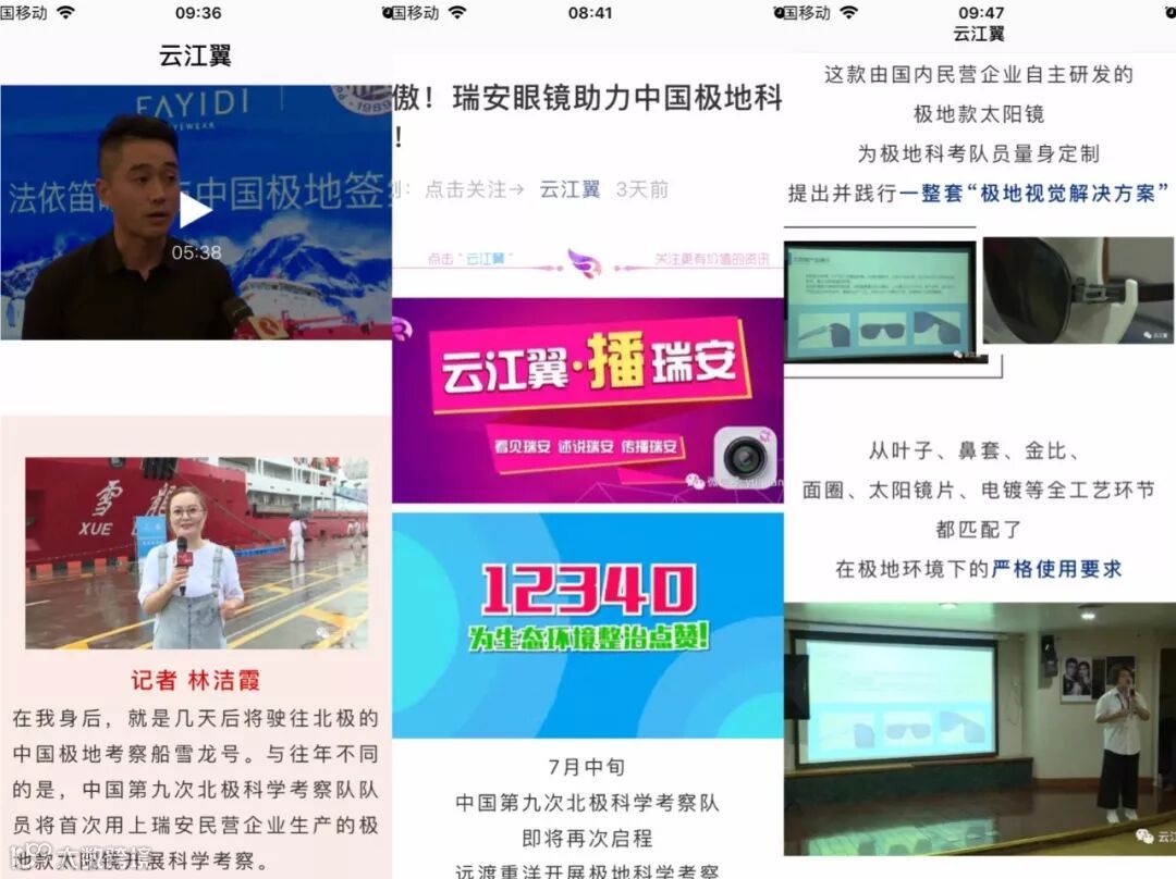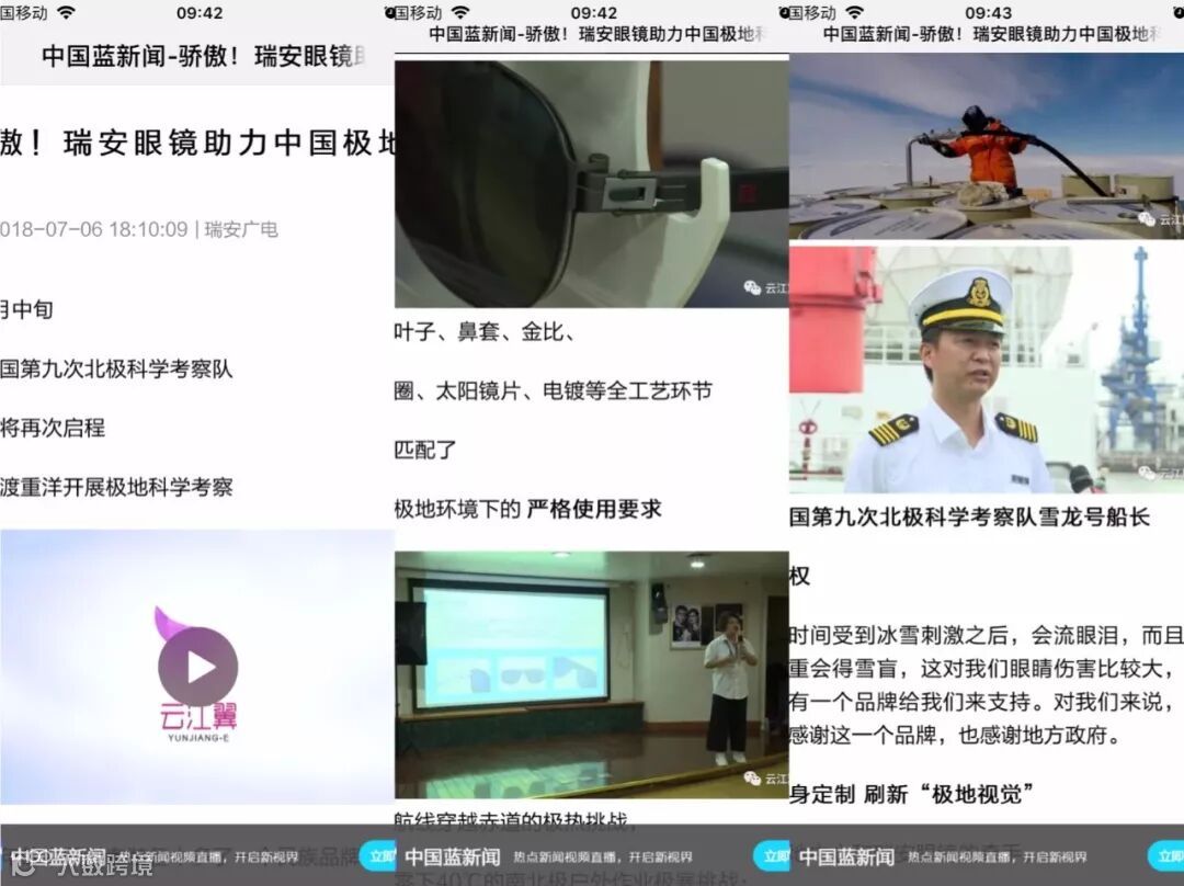 中国蓝新闻、浙江卫视新闻客户端头条、瑞安广电,相继报道和推送题为:“骄傲! 瑞安眼镜助力中国极地科考!”的新闻。