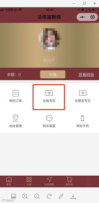 点击“红包兑换专区”
