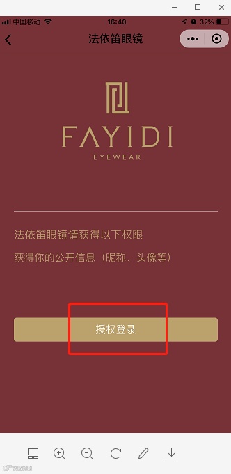 进入“法依笛眼镜”小程序,点击右下角“我的”。
