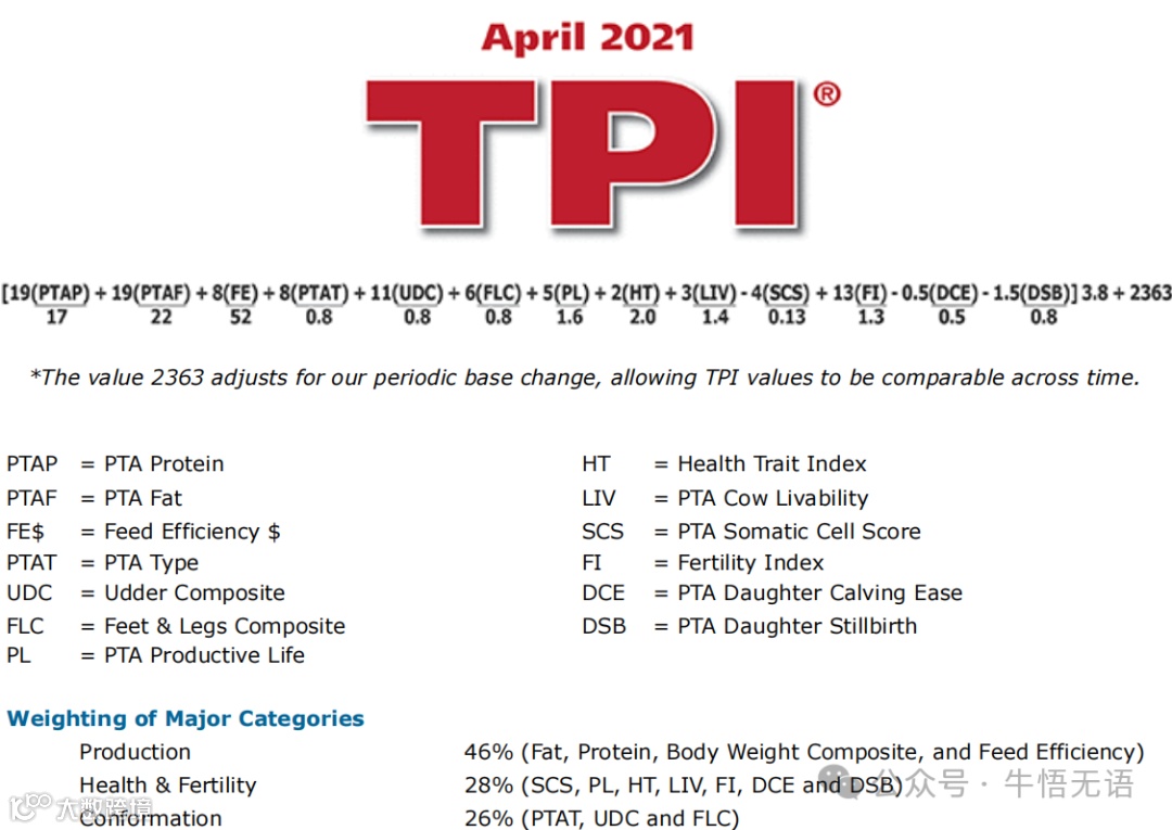 总览:这两份图片都来自 Holstein 协会,旨在解释 TPI 公式的更新及其对奶牛育种的意义。TPI 是一个综合指数,旨在帮助奶农选育更具盈利能力的奶牛。 两次更新都强调了对饲料效率 (FE) 指数的修改,并基于最新的研究和经济假设进行了调整。