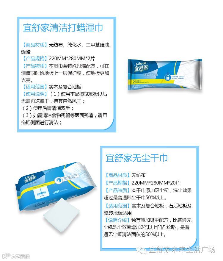 打蜡,是木质地板清洁便不可少的一个环节,能对其产生较好的保护作用,从而增加地板光洁度,宜舒家清洁打蜡湿巾,在对木质地板进行清洁的同时就能给地板加上一层保护膜,再也不用担心出现越清洁地板越灰暗的状况。