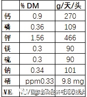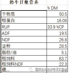 该牧场的奶牛日粮配方