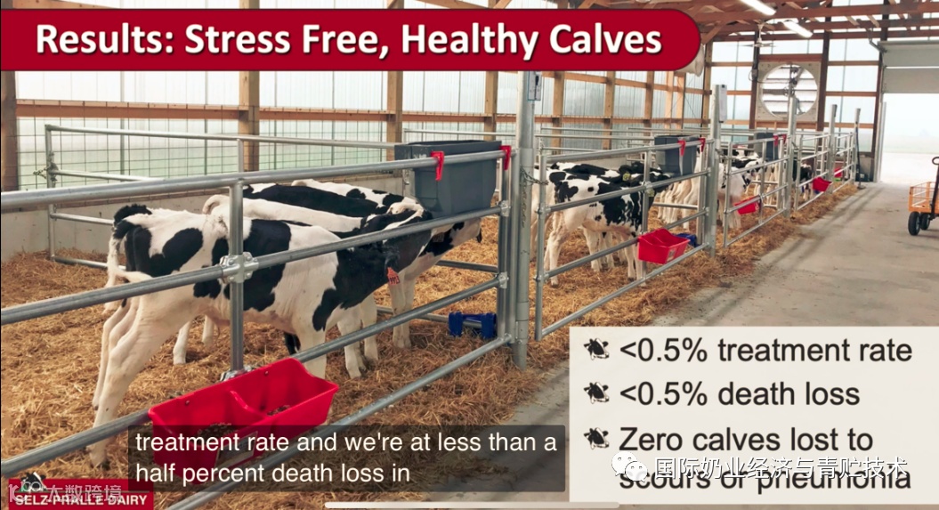 该牧场做很多胚胎移植,对胚胎移植牛,奶牛的泌乳天数可长达600-700天,但后期仍每天保持在45.4公斤以上产奶量。个别不易配上种的奶牛会采用胚胎移植,胚胎移植受孕率在65%。