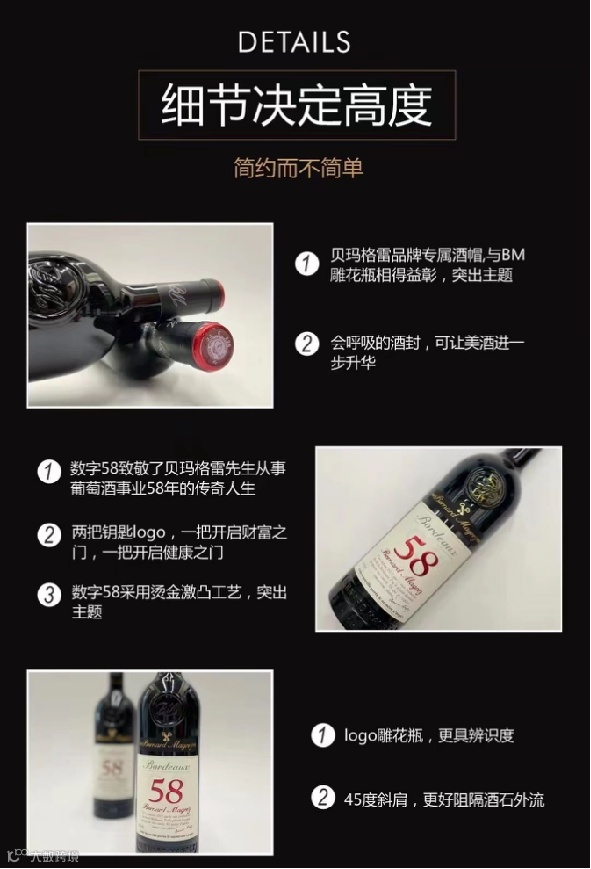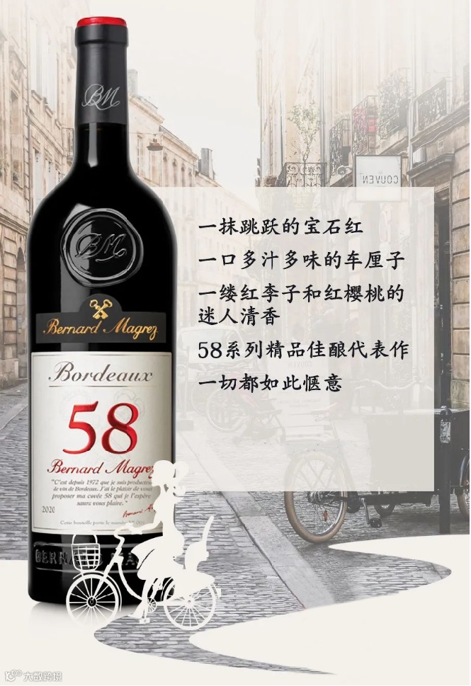 · 贝玛格雷先生从事葡萄酒行业58周年纪念酒款,每一瓶酒标上都有独一无二的数字编码以及贝玛格雷先生的签名,代表着58年从未停止追求卓越葡萄酒的脚步。