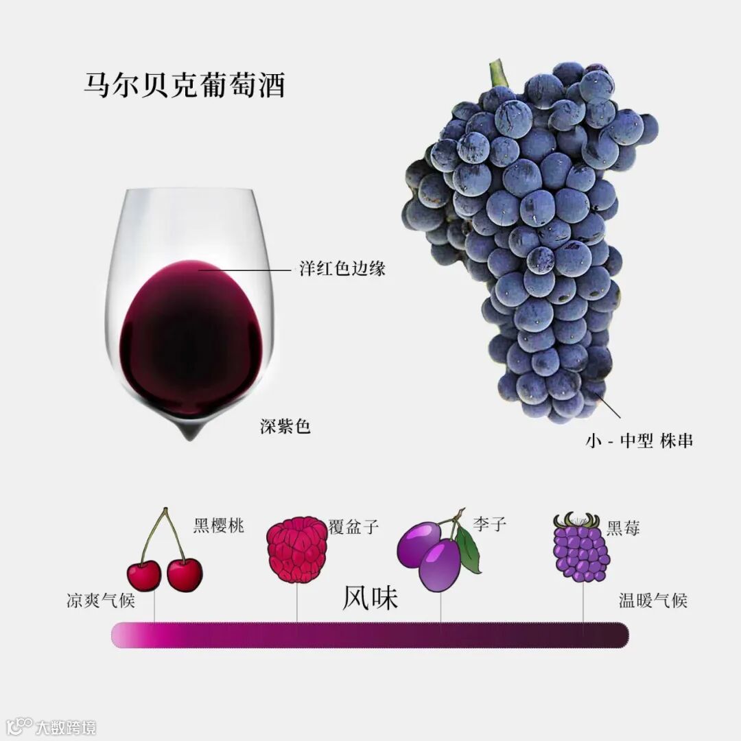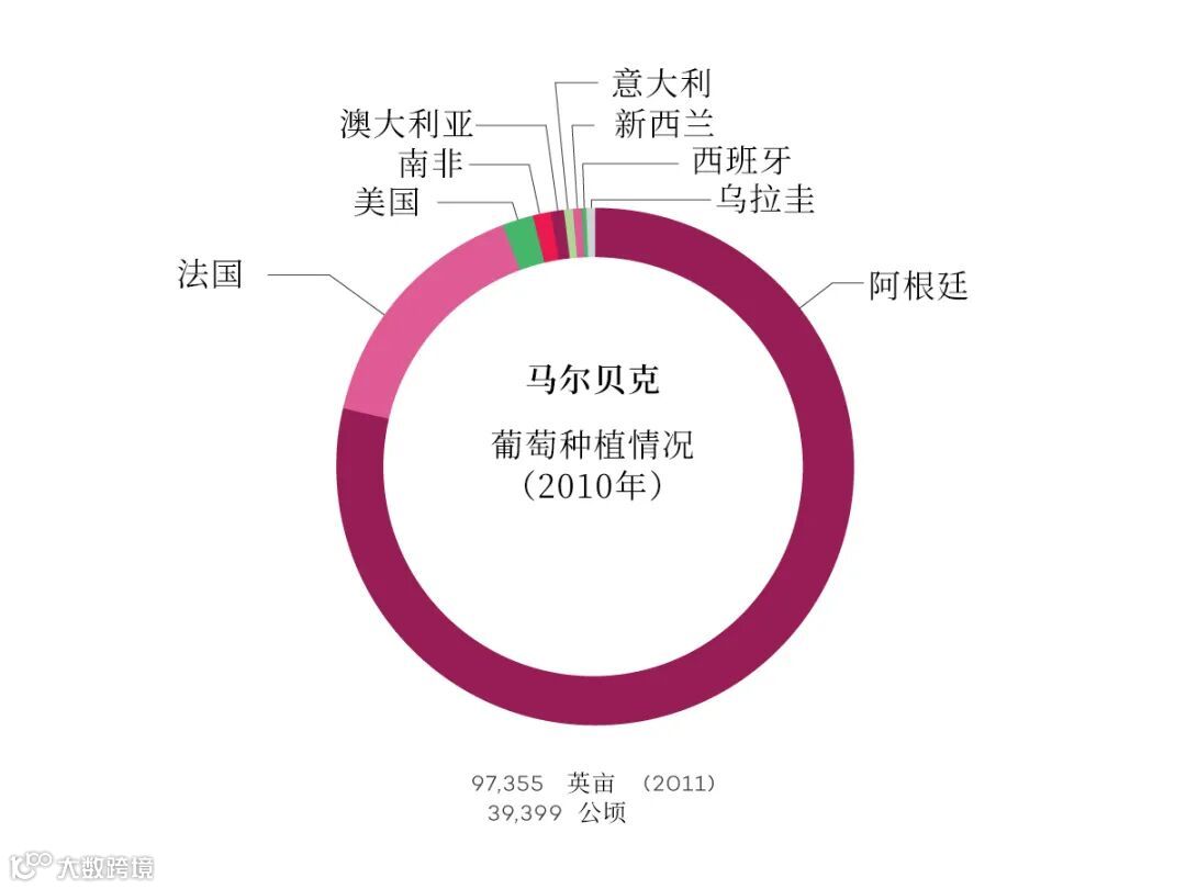阿根廷"拯救"了马尔贝克。在阿根廷开始种植马尔贝克之前,它只是法国西南部的一种小葡萄。如今,马尔贝克占阿根廷葡萄园的四分之三,并遍布世界各地。 -