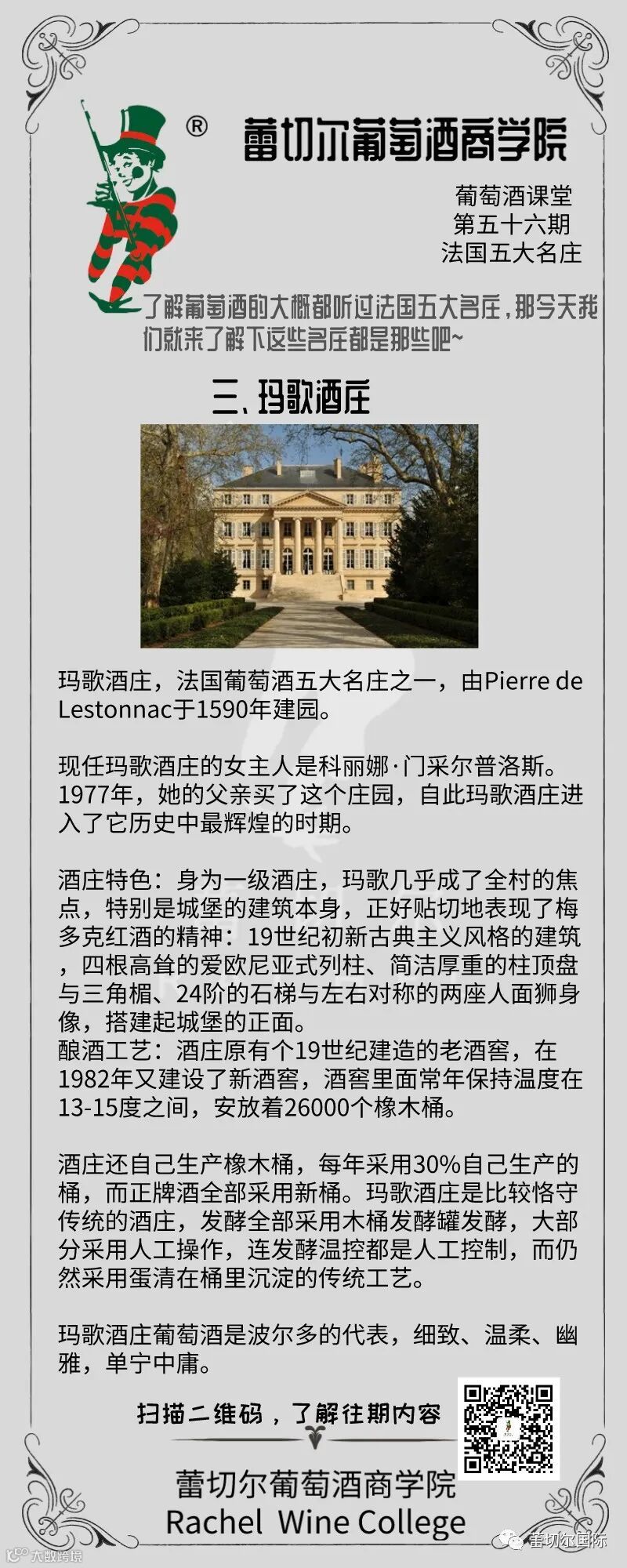 玛歌酒庄,法国葡萄酒五大名庄之一,由Pierre de Lestonnac于1590年建园。
