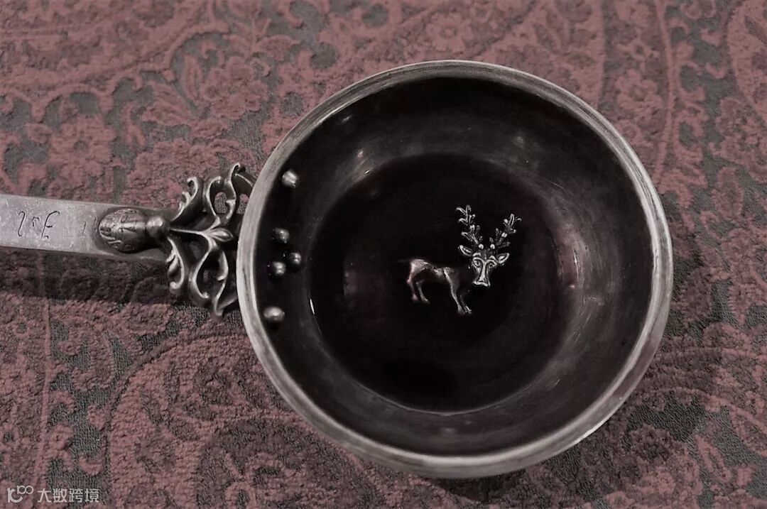 使用时往里面倒入酒液,小鹿的整个脑袋就会因为酒液的波动而摇头晃脑;每抿一口,它就晃得不停,不知这是“酒不醉人鹿自醉”呢,还是对饮酒人迷恋之态的戏谑?