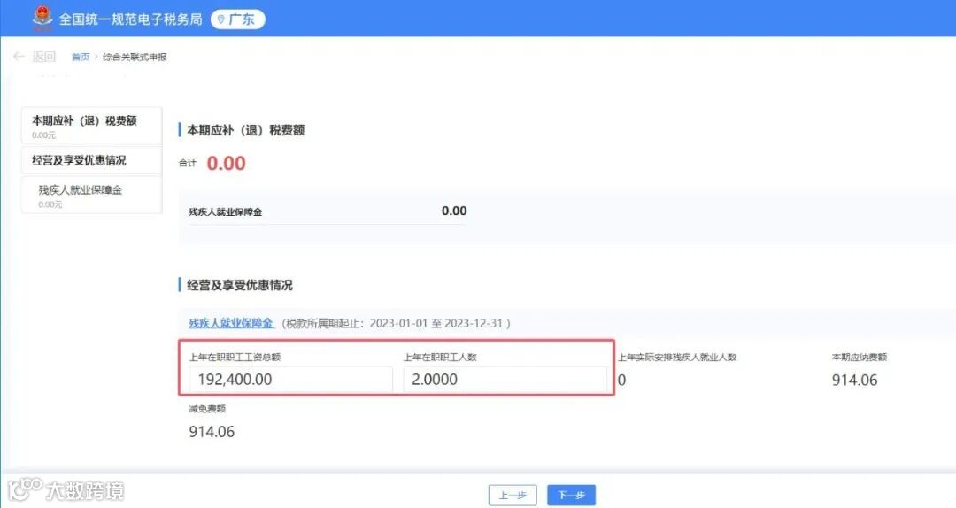 2.上年在职职工人数,可以参考2023年度企业所得税年报表“A000000企业基础信息表”中的“从业人数”进行填写。
