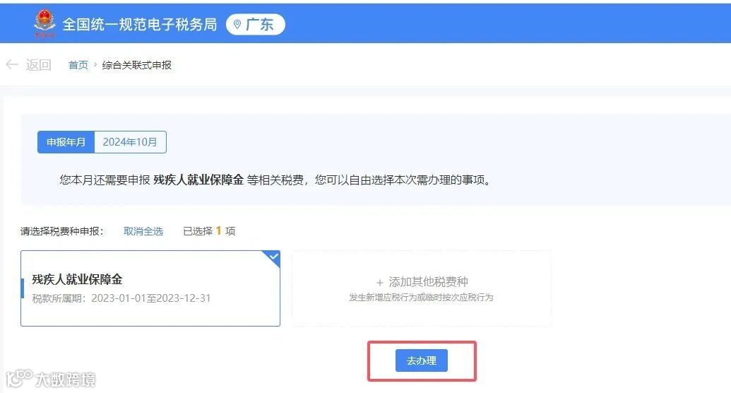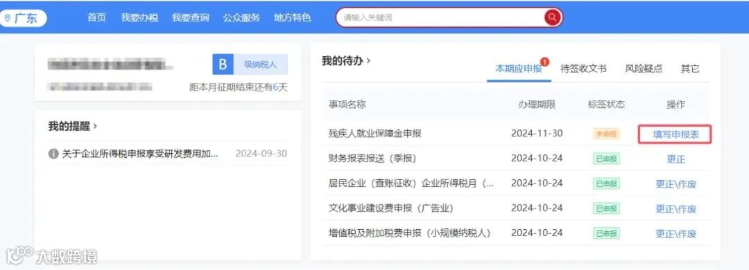 或点击【我要办税】-【税费申报及缴纳】-【非税收入申报】-【残疾人就业保障金申报】