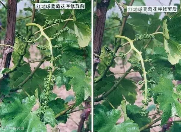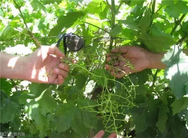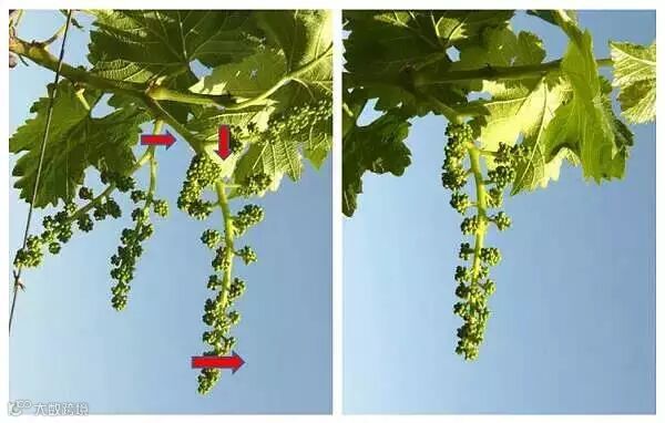 拉长花序。对于一些果粒大、座果率高、果穗大的品种,为了保证使果粒正常膨大有足够的空间,就需要利用生长调节剂适当拉长花序。拉长花序采用赤霉素溶液,浓度为3~5PPM,处理时间为开花前7~10天,即结果枝上有10~11个叶片平展时,这次处理可采用全株喷布。注意:花序拉长剂既有拉长花序的作用,同时也有强烈的疏花效果,因此对落花较重的巨峰系品种一般不要进行花序拉长,以防造成落花落果。同时在气候湿热的南方地区和设施栽培时,花序一般能自然拉长,这时也不需要进行花序拉长。
