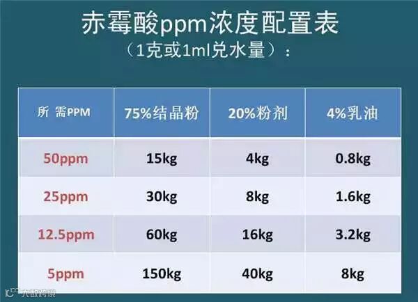 每克原药加水量(斤) =2000×原药纯度÷所需要PPM的浓度