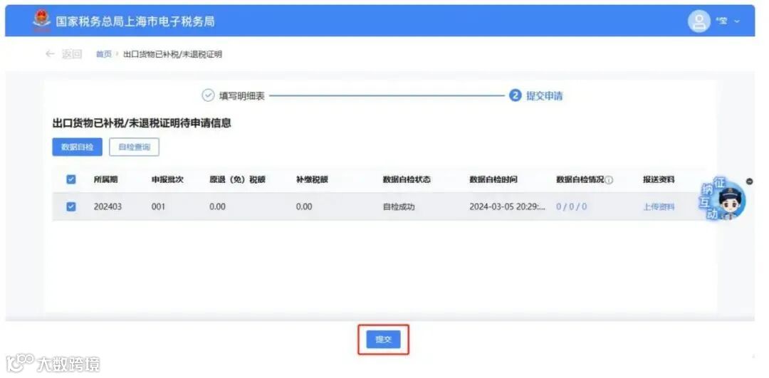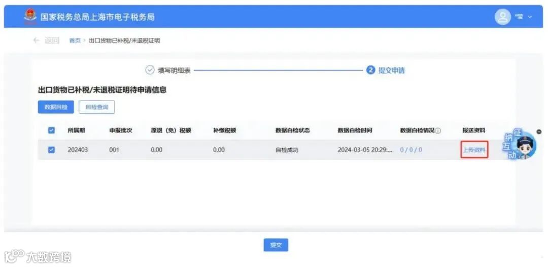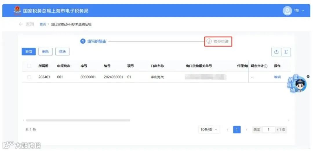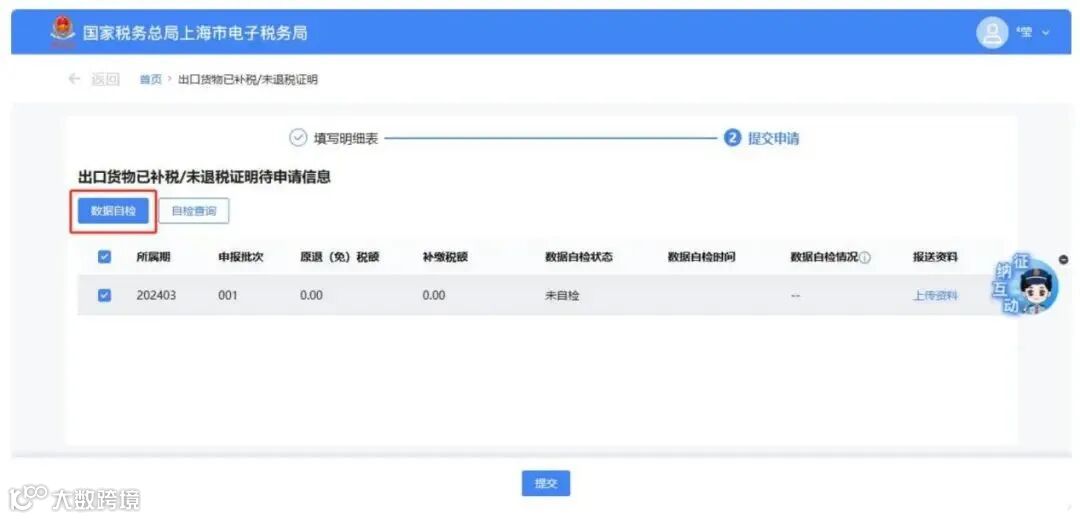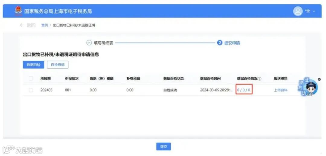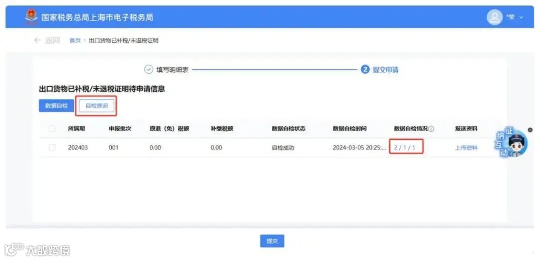 数据处理完毕后,点击【提交申请】按钮.