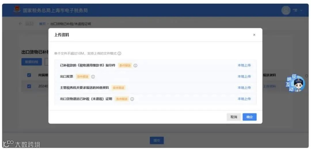 点击【上传资料】按钮,弹出上传资料页面。