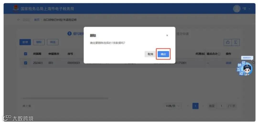 需要删除数据时,勾选需要删除的记录,点击【删除】按钮,弹出二次确认提示,点击【确认】按钮删除不需要的数据,点击【取消】按钮则关闭弹窗提示。