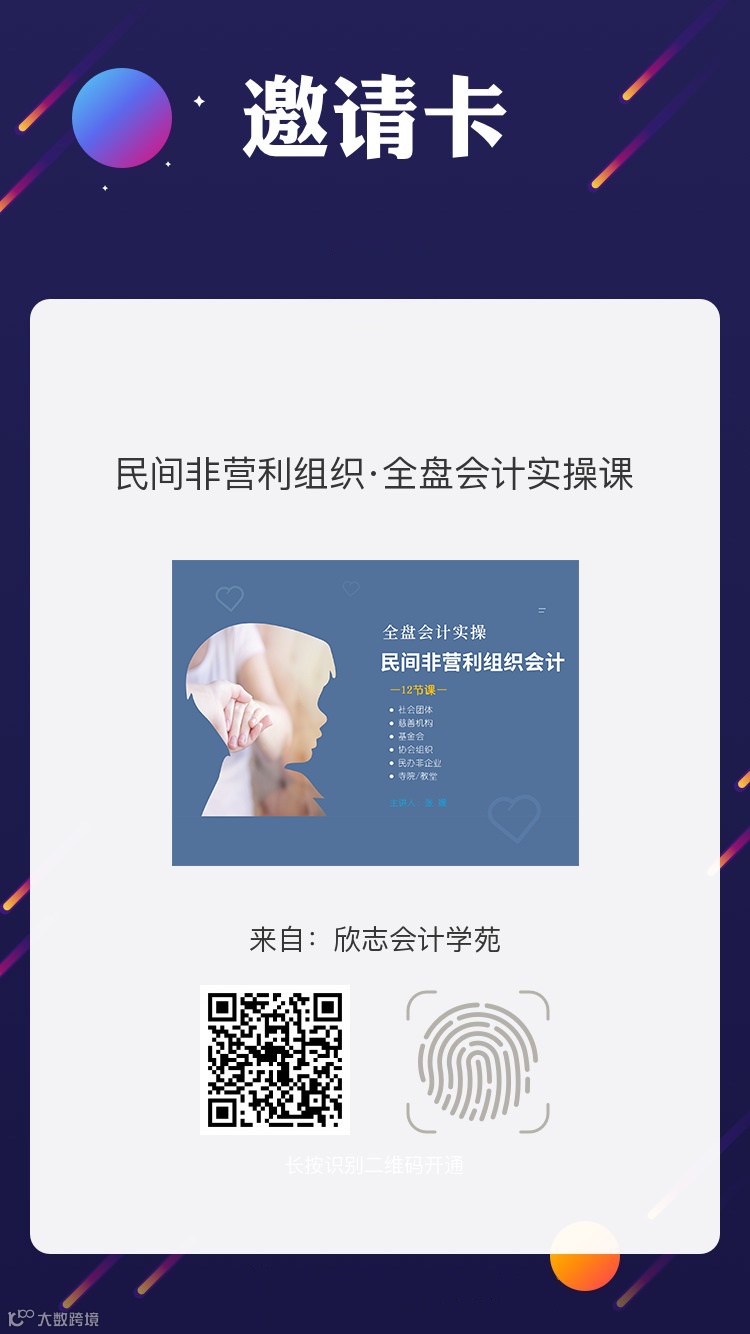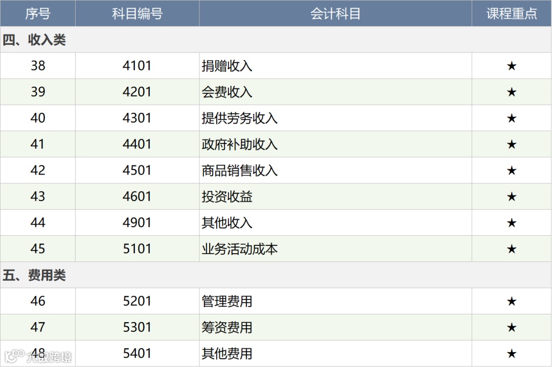 2.民非组织的会计科目体系与营利性企业会计不一样,这也是这个课程的主体内容。