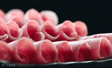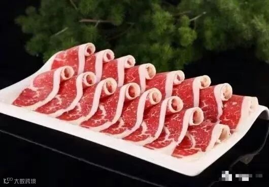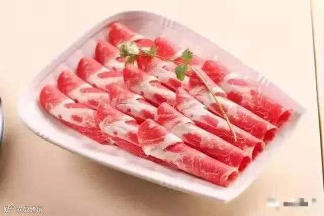 因为是合成的,所以很多肥牛切成片后,可以看到分部很明显并且很规则的一条瘦肉一条肥肉相间的情况。因为牛油和瘦肉码放的很整齐造成的,肥牛根本长不出那么分明的肥瘦界限。