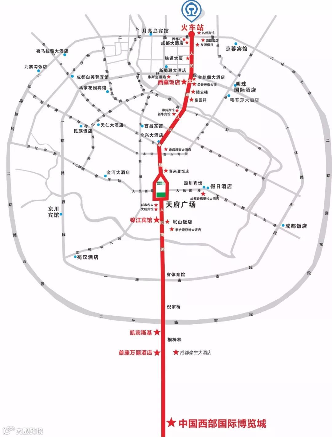 火车北站——成都大酒店:建议步行200米直达