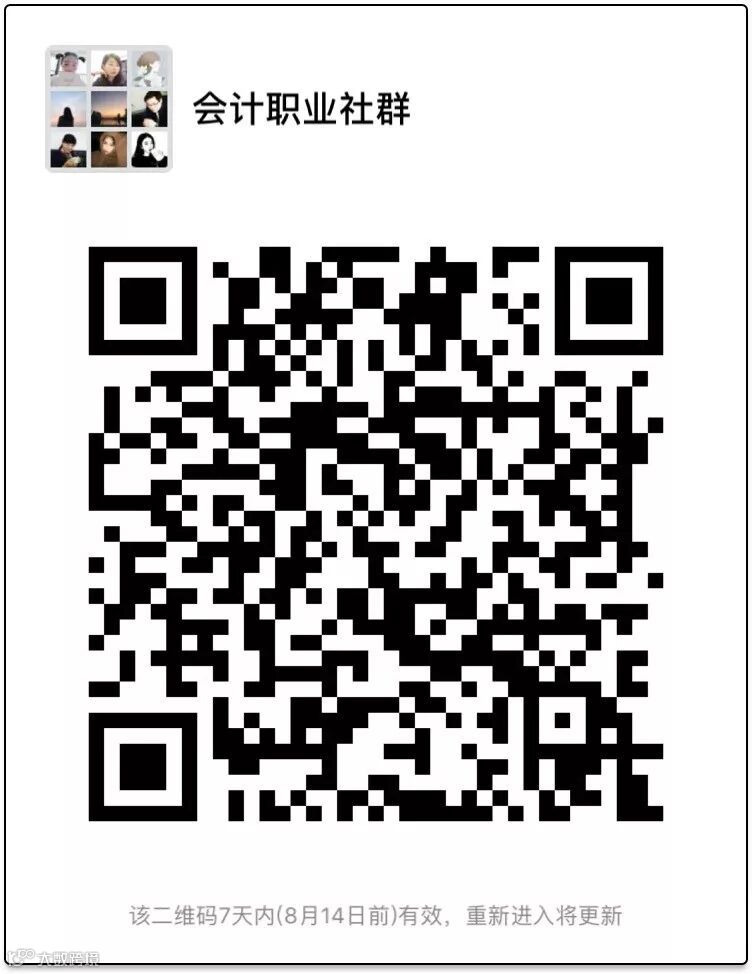 我想了很多办法如何帮助小伙伴们解决你们的小疑惑,所以‘会计职业社群’就在这么简单的初心下成立了,希望在你会计职业生涯中,我们来一路陪同,欢迎志同道合的小伙伴加入我们的小社群,不定期分享中小企业财务知识、政策解析,也可帮你解决职场小困惑。(二维码过期后,小伙伴们如果想入群可以留言“加群”,我会补发二维码给你的哦~)