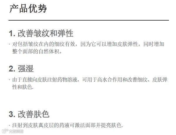 注射程序,根据药物溶液,可以改善皱纹、弹性、强力保湿和提亮肤色,不会在皮肤上留下疤痕,大约需要10 分钟才能完成手术。