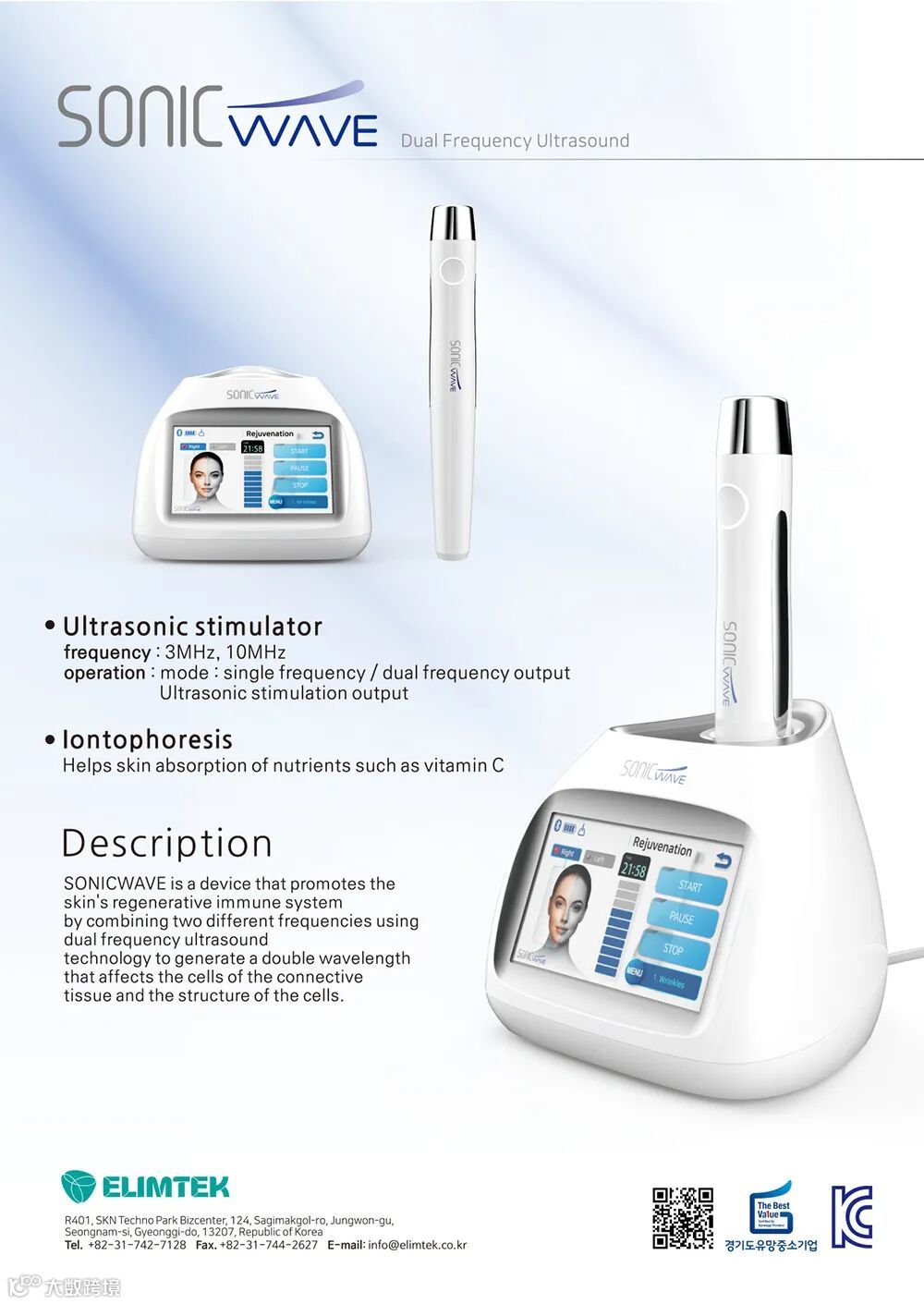 (株)ELIMTECH于2012年成立,主要从事院线美容仪和家用美容仪器的自主研发及生产、销售,拥有风险企业认证和GMP和ISO13485、京畿道优秀中小企业认证、出口前景中小企业认证。同时也提供OEM服务。