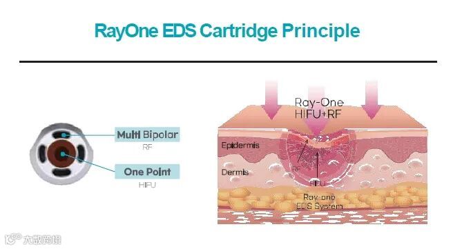 RAYONE是应用独特的 EDS(同时改善表皮、真皮和 SMAS(皮下脂肪))技术制成的产品,结合了HIFU和 RF治疗的优点。