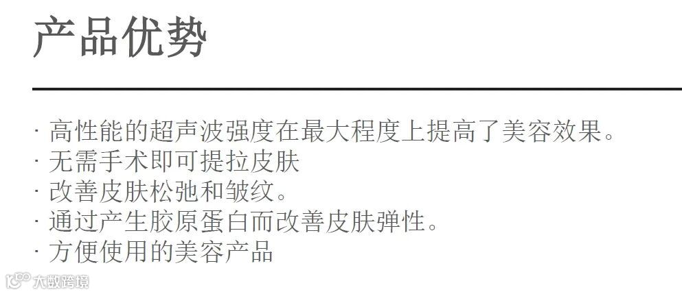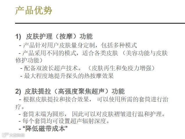 作为一款使用高强度聚焦超声(HIFU) 的设备,HIPRO是专为皮肤护理店和个人家 庭护理使用而设计的,是一款通过热力作用, 将超声能量聚集在皮肤表面之下, 提高皮肤内胚层组织温度从而提拉皮肤的产品。