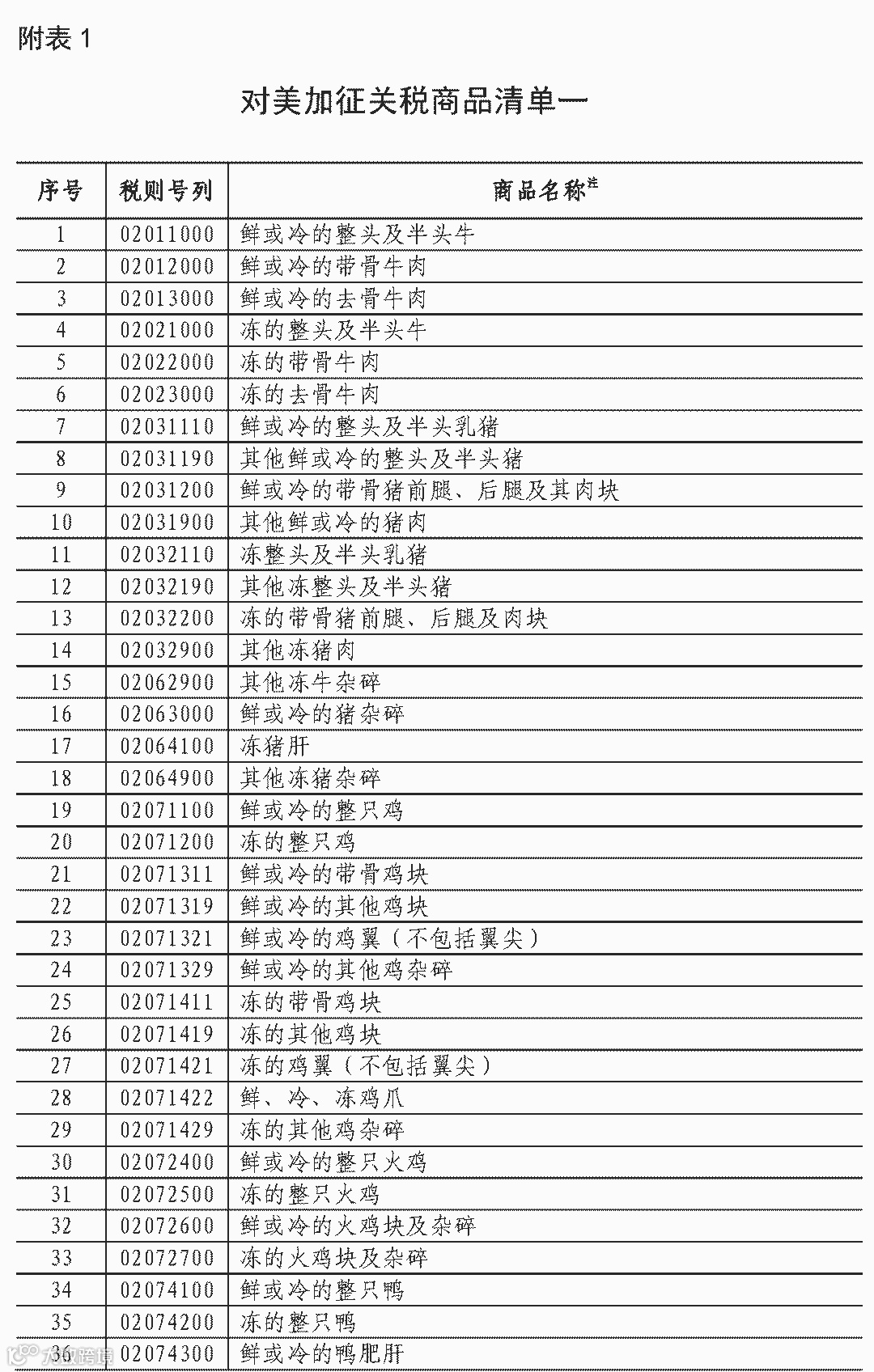 1.对美加征关税商品清单一