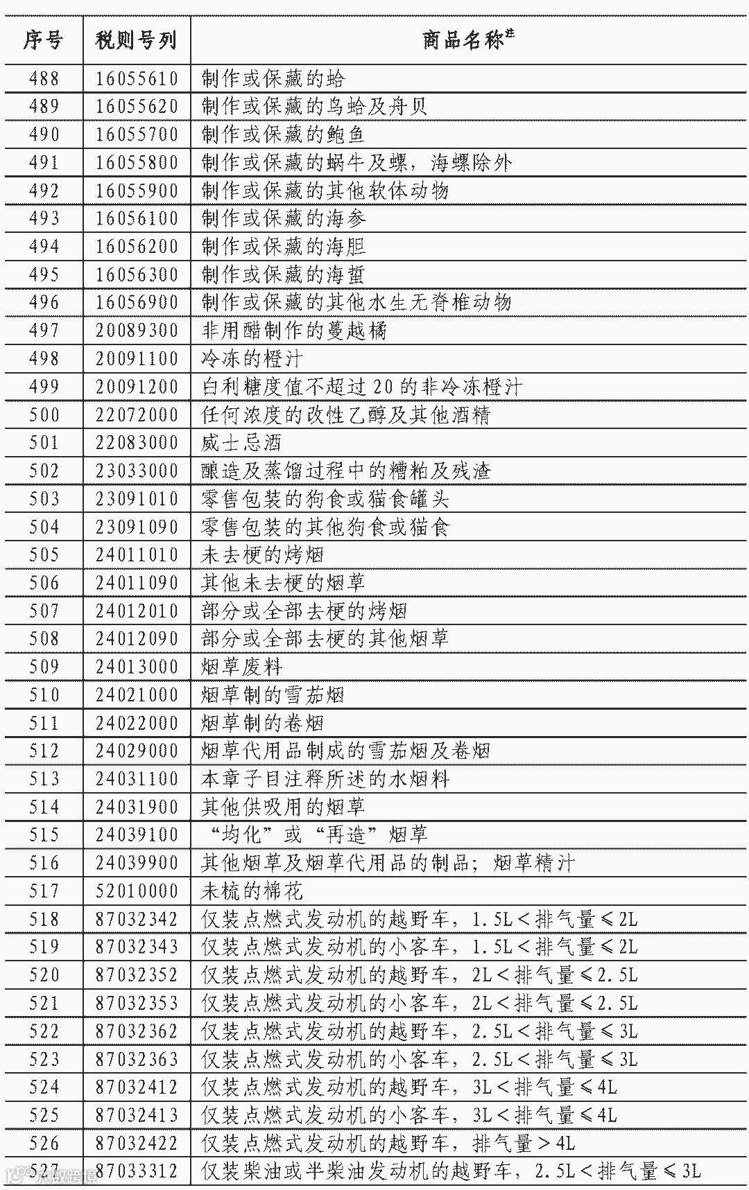一、对农产品、汽车、水产品等545项商品,自2018年7月6日起实施加征关税,具体商品范围见附表1。