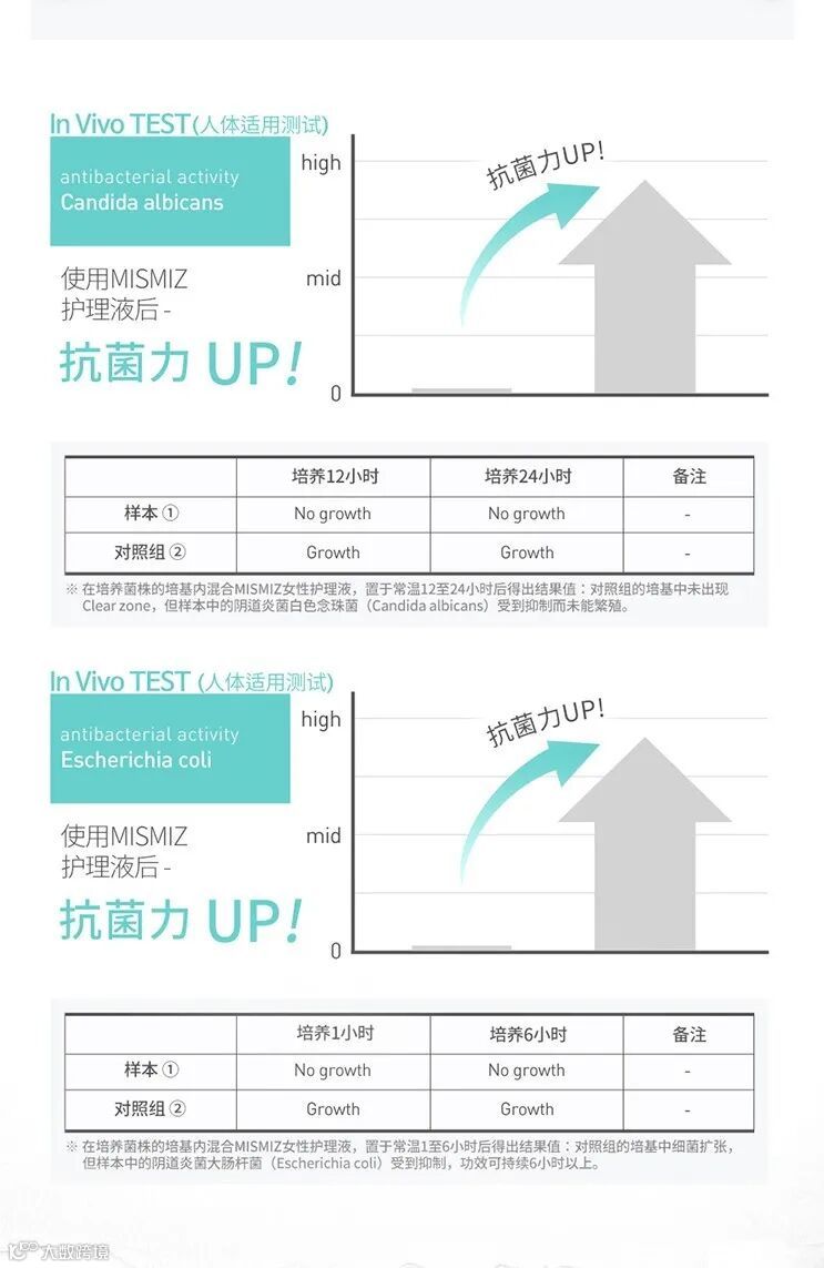 已通过人体适用抗菌测试和大肠杆菌测试,证实对Y区部位的清洁杀菌效果。