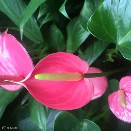 粉掌,学名花烛,属于天南星科花烛属。其原产地为南美洲的热带雨林地区。随着经济水平的提升,粉掌作为一种高档花卉的应用前景广阔。粉掌的花朵独具特色,佛焰苞色彩鲜艳华丽,变化丰富多样,且花期较长,水培单朵花期可达2至4个月。因此,粉掌被认为是一种具有较大发展潜力的名优花卉。