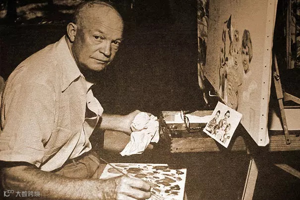 艾森豪威尔,这位美国的陆军五星上将和第34任总统,当他观察Tomas E. Stephens为他的妻子玛米画肖像画时,灵感突发,开始拿起画笔。在他人生最后的20年,完全称得上是一位多产的创作者,但是作品还是相对地保守。他创作风景画和爱国主义肖像,也不怎么上心当代艺术。就他的作品而言,这位总统十分的谦逊,创作的主要目的就是为了放松。他也曾抱怨在结束总统任期后,能抽抽出来绘画的时间变得更少,因为那时的时间安排得更好。