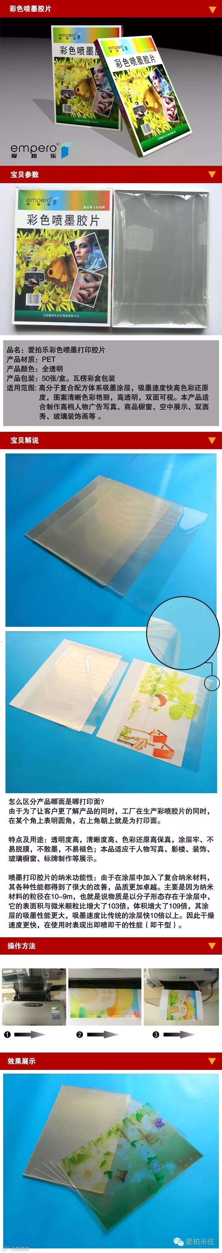 【特点】透明度、清晰度高 ,涂层牢、不易脱模,不散墨,不易腿色;