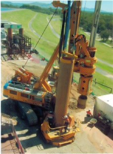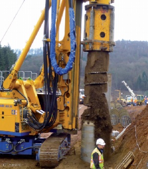 钻孔桩等,旋挖钻机施工于斜桩时,必须在套管导向作用下进行施工,否则难以成孔,甚至造成部件破坏。