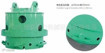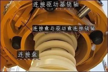 驱动盘①通过螺栓与动力头驱动套管筒底面连接,作用是传递扭矩与加压力。连接盘②通过销轴与驱动盘连接,并预留与护筒驱动器连接销轴。