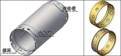 套管上端通过销轴可与护筒驱动器驱动花管或套管连接,套管下端可与筒靴或套管连接。套管有防护支撑及导向作用。