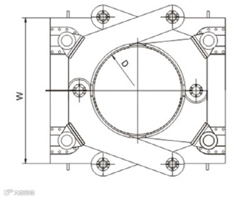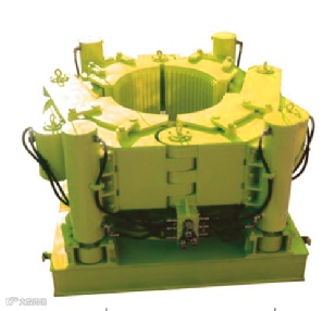 驱动花管器上部通过销轴与连接盘连接,下部与套管连接。驱动花管直径需与套管直径相符合;驱动花管下部有定位凹槽及止口,便于与套管连接。驱动花管器的作用是将扭矩和加压力传递给套管及套管靴。