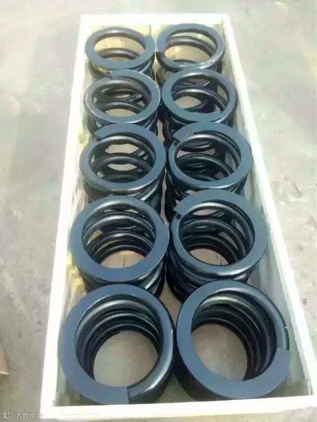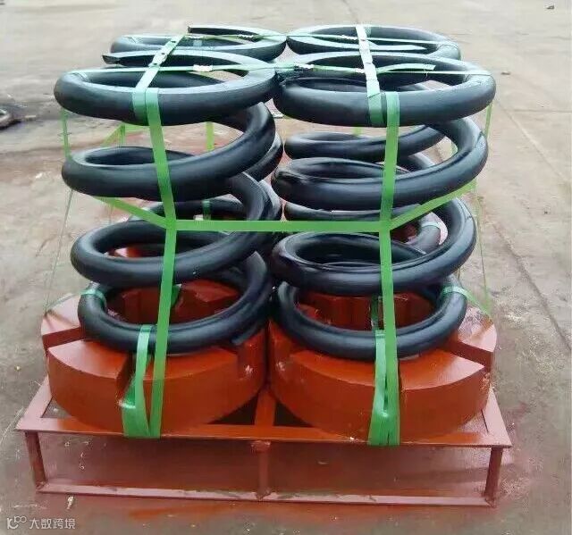 4.减震弹簧起到保护钻杆和钻机两重作用,减震弹簧断裂、并圈、变形,必须及时更换,钻杆弹簧的力学性能经过严格计算,不准随意变更,钻杆弹簧材料为60Si2MnA。减震环总成起到保护主机的作用,一旦减震环总成橡胶破碎、脱落、老化,钻杆快速下落就会砸(冲击)主机,钻杆使用过程要保证减震环总成橡胶基本完好。防带杆托盘起到防带杆作用,一旦该件在使用过程中受到冲击后变形、弯曲,就会造成与相邻钻杆钢管内径间隙变小,严重时,钻杆伸缩不灵活或卡死,不能伸缩。