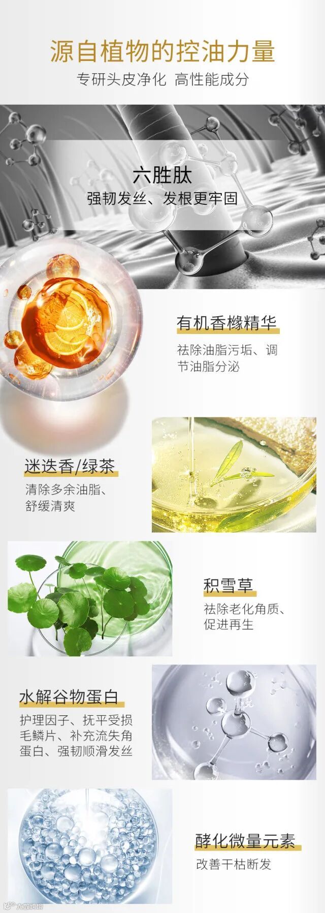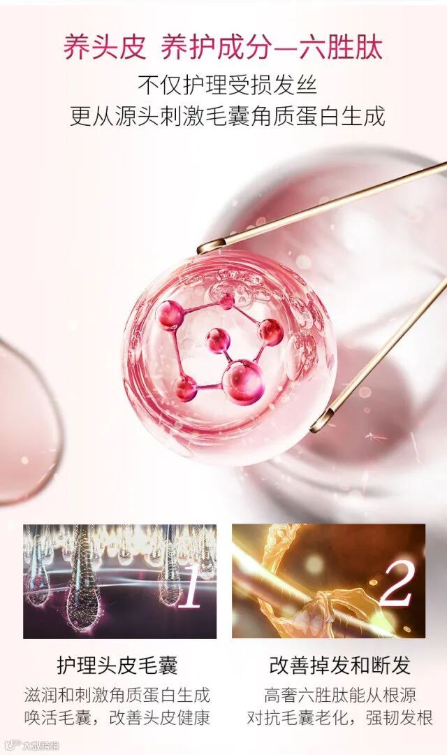 1.蕴含珍贵的六胜肽,防止头皮衰老,提升秀发的强韧支撑力