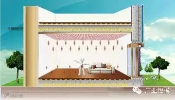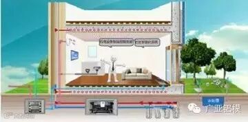 采用混凝土楼板低温辐射采暖制冷技术,全年365天运行,无任何噪音,整个系统有很强的自我调节能力,被公认为目前世界上最好的温度调节系统之一。楼管内预埋与建筑结构同使用寿命的优质工程塑料管材。管内夏天通入18-21摄氏度冷水,冬天通入28-31摄氏度热水,通过水管加热(或冷却)楼板,由楼板以辐射的方式向室内释放或吸收能量。仅通过天棚柔和的、均匀的辐射采暖/制冷,常年室温可维持在20~26℃。运用天棚柔和辐射冷暖系统具有效率高、温度均匀;不占用室内空间,不会破坏建筑外观,无风感、无气流感,采暖和制冷与空气分离的优势,并且根据室内温度,还可以调节供水温度,使室内恒温,常年四季如春。
