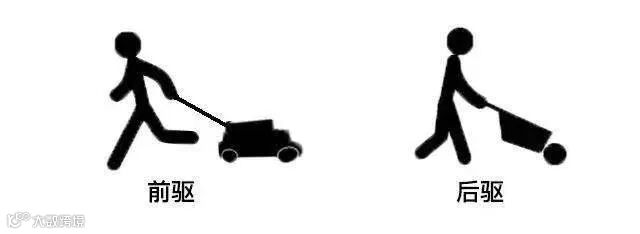 那当然同理,后驱、后驱,意思就是说车子两个后轮负责驱动,动力来源于后轮,这时整个车子相当于是被后轮推着走的。
