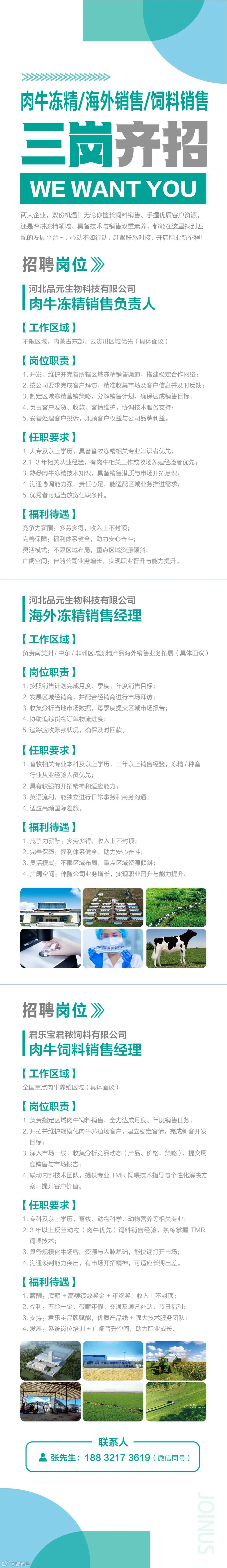 三岗齐招!冻精销售/海外销售/饲料销售,双企机遇,虚位以待!