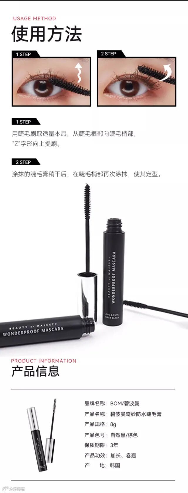 【余额提货】韩国/KOREA BOM碧波曼奇妙防水睫毛膏8g/支(2色可选)