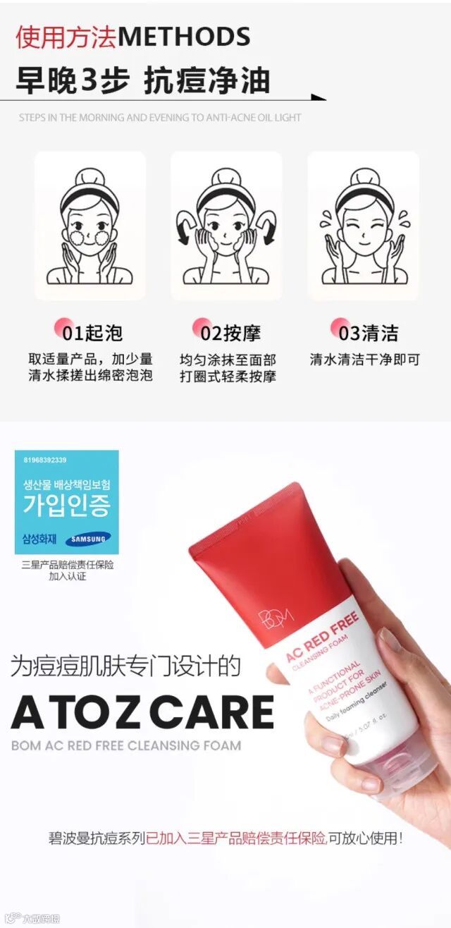 【余额提货】韩国/KOREA BOM碧波曼抗痘洗面奶150ml/支