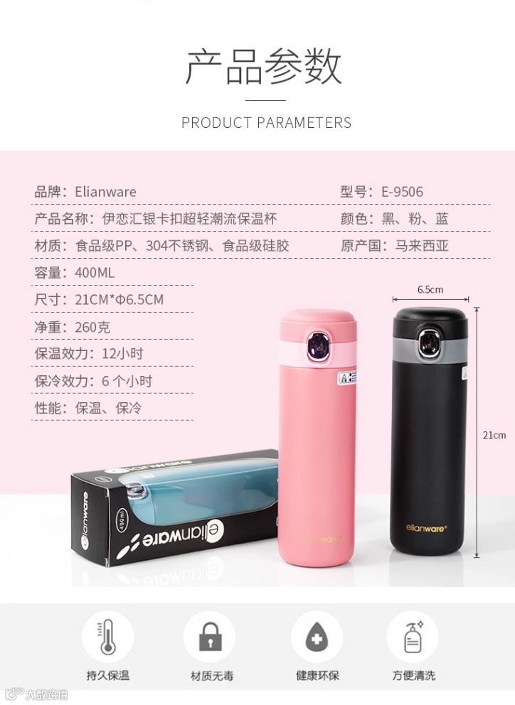 【余额提货】Elianware马来西亚颜值豌豆杯400ml(E-9506)