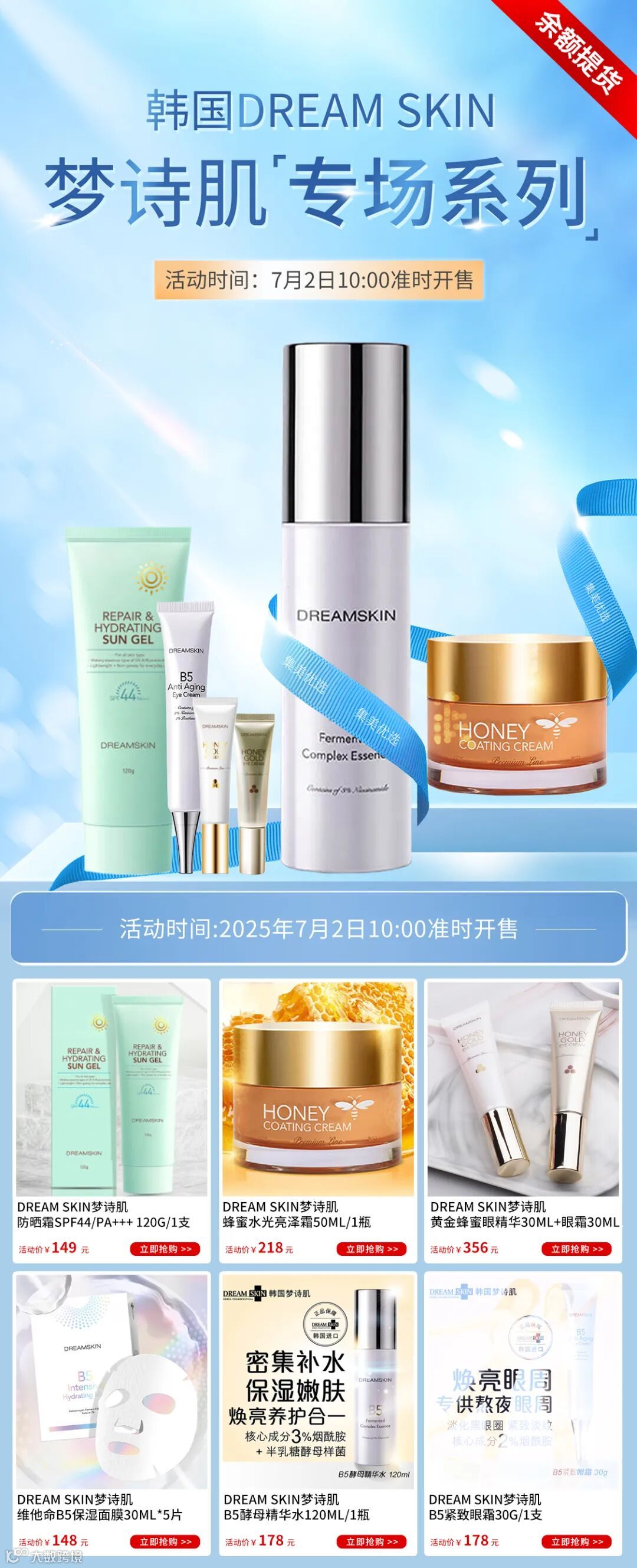 【产品名称】:DREAM SKIN梦诗肌蜂蜜水光亮泽霜