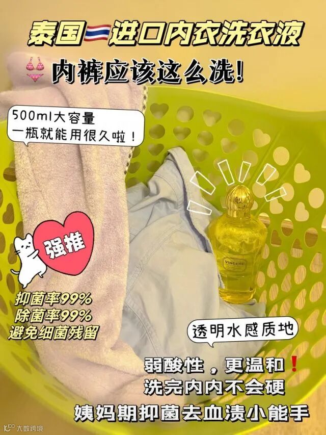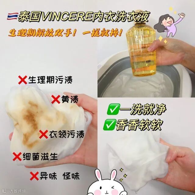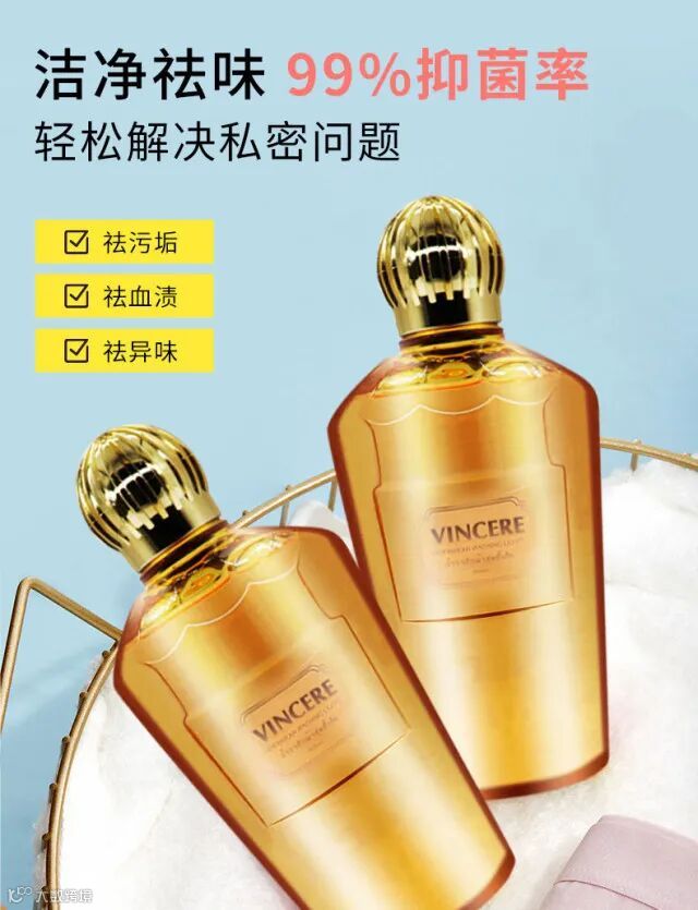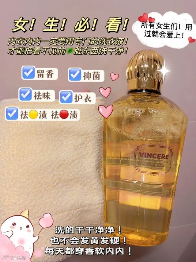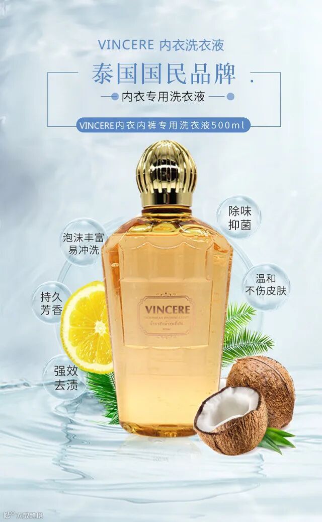 专为内衣裤设计的VINCERE内衣洗衣液五大功效,呵护私密健康,集去渍洁净、护衣、去菌、氛香于一身。
