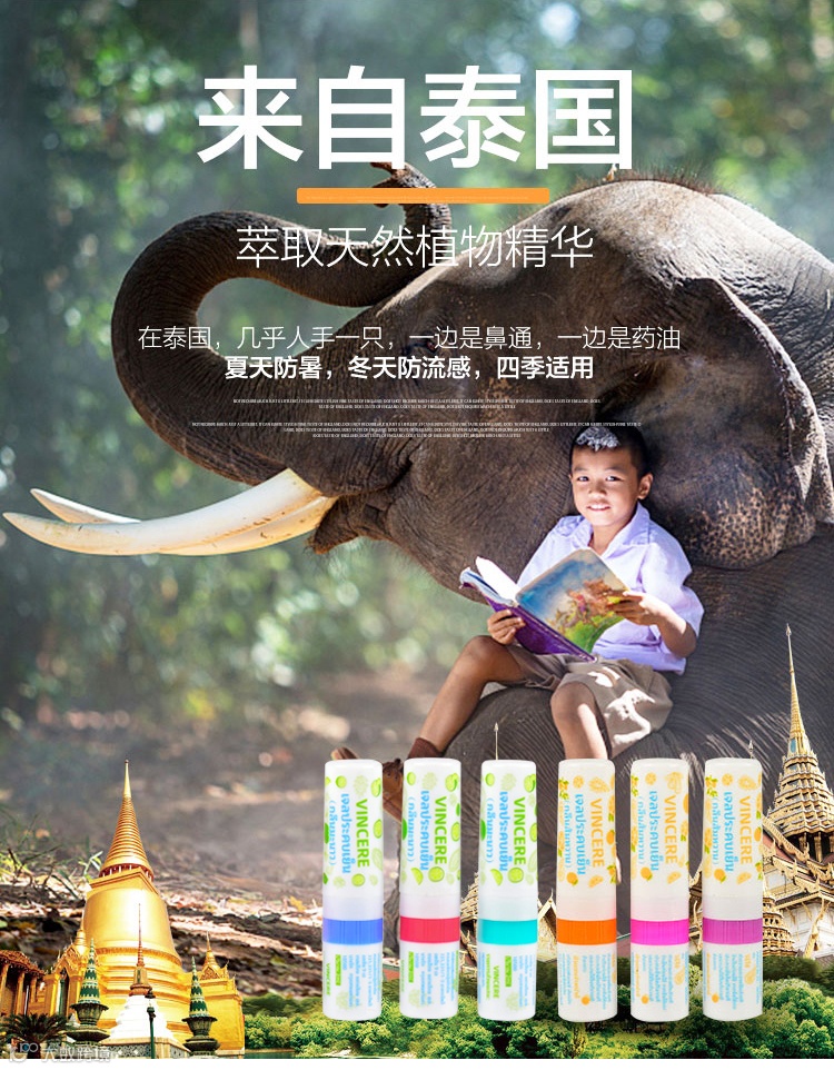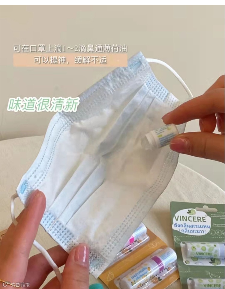 【余额提货】泰国VINCERE精油花香鼻通2ml*3支/排 甜橙味口袋能量棒