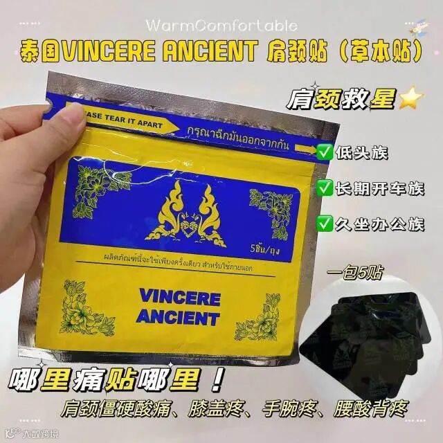 【余额提货】泰国VINCERE肩颈贴5贴*3包/组 肩颈急救 一贴管用