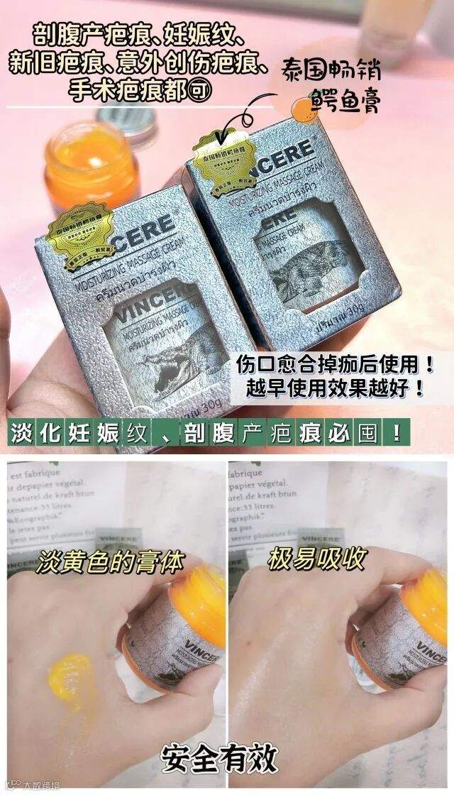 【余额提货】泰国VINCERE鳄鱼膏30g*3瓶/组 疤痕克星